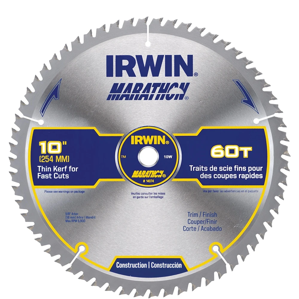 The IRWIN Marathon 10-in 60-tooth carbide miter/table saw blade is designed to make your wood, plywood, and composite decking jobs run smoother. The blades are crafted with construction-grade carbide to ensure clean, precise cuts. The blade’s thin kerf ensures fast cuts and doesn’t require too much force from your end. Switch out your stock blade with this 10-in carbide miter/table saw blade. It stays sharp even after multiple DIY projects around the house. It can also keep up with more demanding jobsite needs. It lasts for a reasonable period and gives you your money’s worth. Shop the IRWIN Marathon miter/table saw blade today.