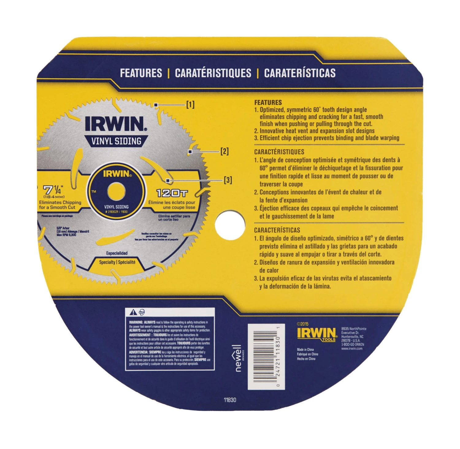 IRWIN Marathon vinyl siding 7-1/4-in 120T saw blade.