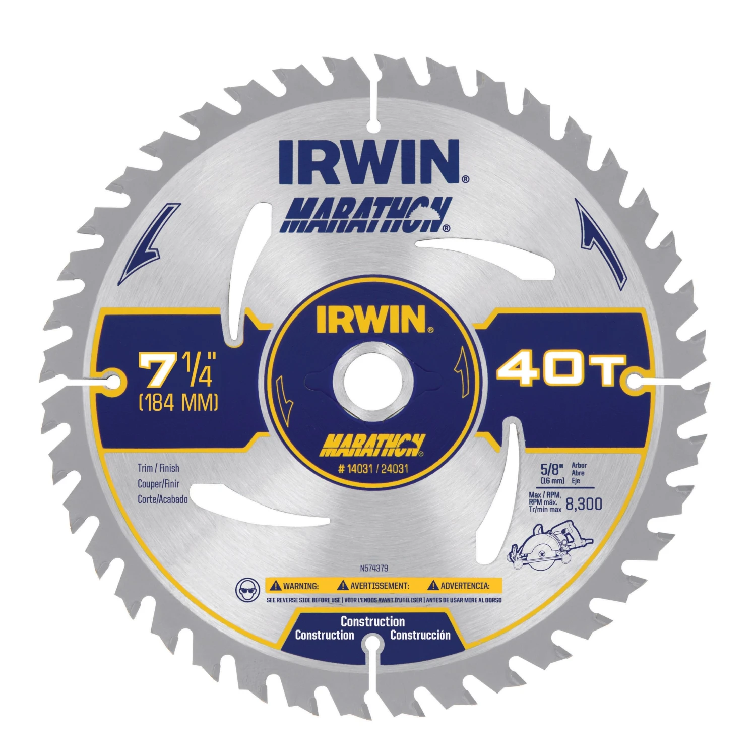 Enhance the capabilities of your handheld circular saw with the use of the IRWIN Marathon 7-1/4-in 40-tooth carbide circular saw blade. This saw blade features construction-grade carbide teeth, making them durable and resistant to wear. Every other tooth carbide-tipped tooth is thinner and the plate has 4 heat vent or expansion slots that reduce the blade’s vibration against the material you’re cutting. These specific designs not only help you make faster cuts, but also smoother ones. The IRWIN 40T 7-1/4-in circular saw blade is perfect for cutting solid wood or plywood. With the reinforced shoulder, the blade is also perfect for when you’re working on composite decking. Check out this must-have circular saw blade from Lowes.com today.