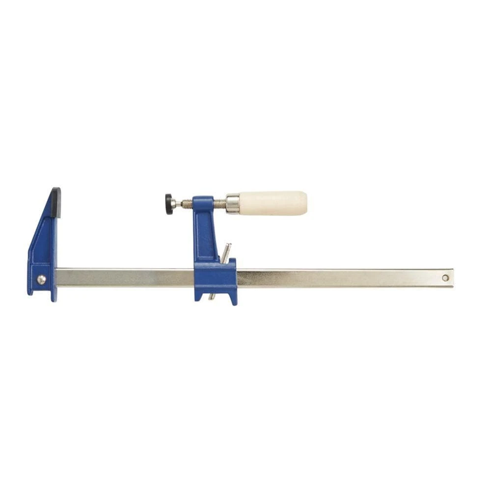 This bar clamp features an I-beam bar that reduces flexing and bowing. It has a clutch lock for easy movement along bar.