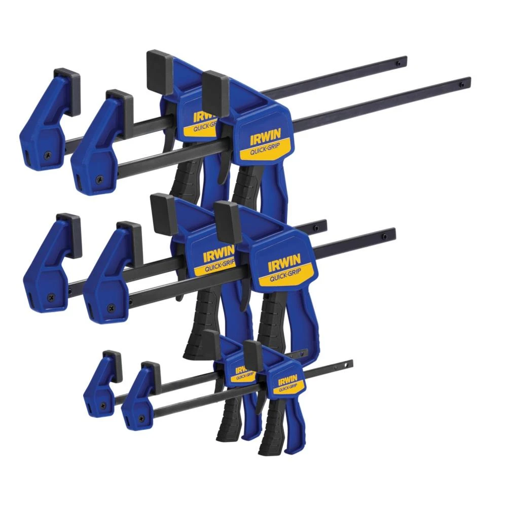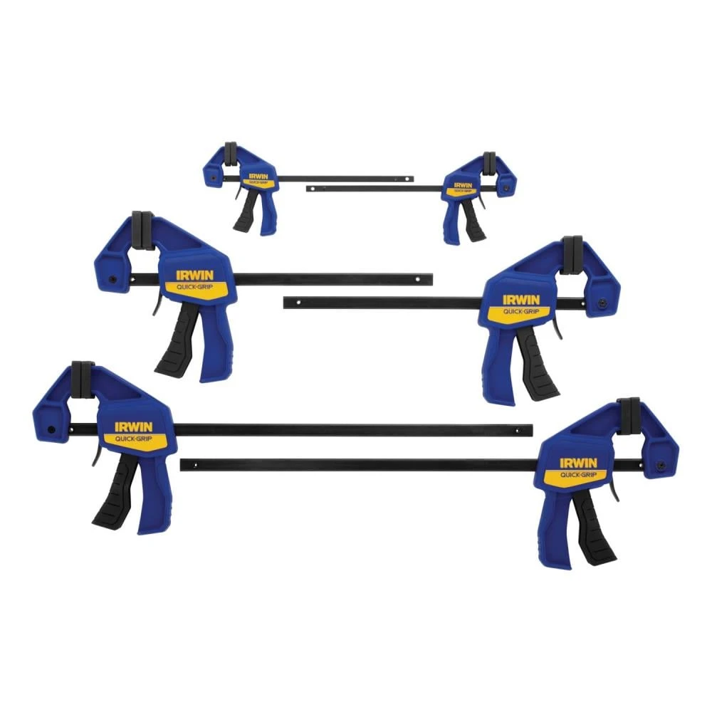 - Includes (2) 4-1/4-in Micro One Handed bar clamps, (2) 6-in Mini One Handed bar clamps and (2) 12-in Mini One Handed bar clamps