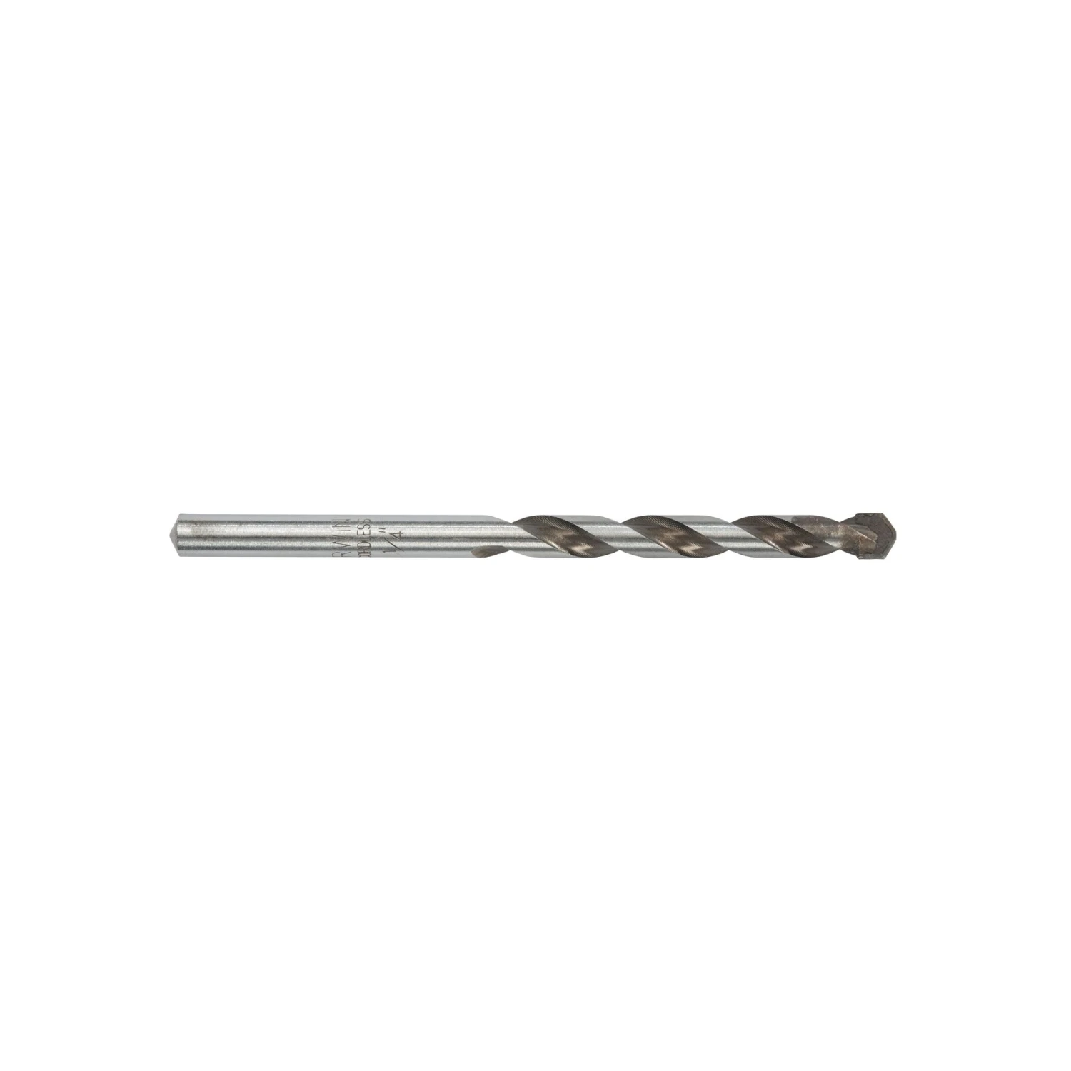 The Irwin Tools Multi Material Drill Bit 1/4-in is designed to drill into a variety of materials. These bits will drill in brick, block, tile, metal, wood plastic and marble. The brazed carbide tip has a unique diamond ground 4-face design for excellent centered starts with little walking and best hole quality. The special grind angle creates sharper tip edges for fast starts in tough materials and the double ground flute ensures fast and efficient removal of the drilling dust and prevents clogging. The multi-material bit features a special duo tone surface finish that reduces friction and resistance, therefore increasing bit life and drill battery life.
