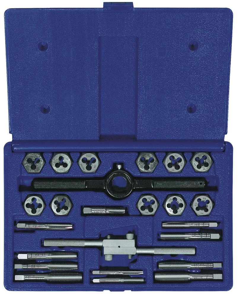 | Package Contents | 11 SAE taps, 11 SAE dies, plain die stock (1-in) and offset adjustable tap wrench – taps #0-1/2-in |